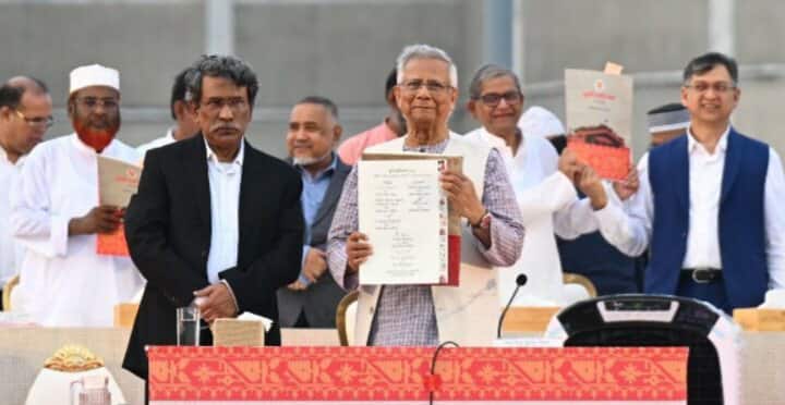 প্রধান উপদেষ্টা অধ্যাপক মুহাম্মদ ইউনূস শুক্রবার জুলাই স্মারক সনদ-২০২৫ স্বাক্ষরের মুহূর্তকে একটি মহান দিন বলে মন্তব্য করেছেন। এবং এটিকে নতুন বাংলাদেশের সূচনা হিসেবে দেখেছেন। ঐতিহাসিক দলিল স্বাক্ষরের পরপরই তিনি তার বক্তৃতায় বলেন, ‘এটি একটি মহান দিন। এটি নতুন বাংলাদেশের সূচনা।’ জাতীয় ঐক্যমত্য কমিশনের প্রধান অধ্যাপক ইউনূস রাজনীতিবিদদের ধন্যবাদ জানিয়ে বলেন যে তারা কেবল জাতির জন্যই নয়, বরং বিশ্বের জন্যও একটি উদাহরণ স্থাপন করেছেন। ‘এর মাধ্যমে তারা জাতিকে এক নতুন উচ্চতায় নিয়ে গেছেন,’ অধ্যাপক ইউনূস বলেন।