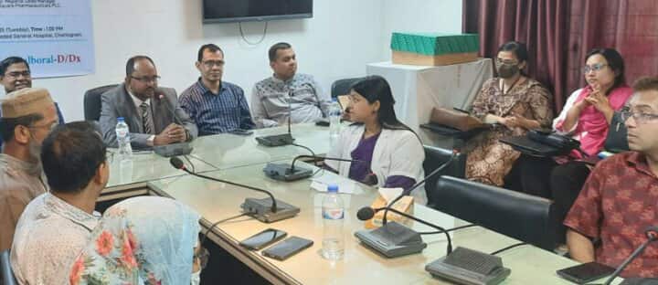 বিশেষ অতিথি ছিলেন চট্টগ্রাম জেলা সিভিল সার্জন ডা. জাহাঙ্গীর আলম। মাল্টিমিডিয়ার মাধ্যমে মূল প্রবন্ধ উপস্থাপন করেন চট্টগ্রাম ২৫০ শয্যা বিশিষ্ট জেনারেল হাসপাতালের ফিজিক্যাল মেডিসিন এন্ড রিহ্যাবিলিটেশন বিভাগের প্রধান ও সহকারী অধ্যাপক ডা. পলাশ নাগ। হাসপাতালের তত্ত¡াবধায়ক ডা. মোঃ একরাম হোসেনের সভাপতিত্বে ও জুনিয়র কনসালট্যান্ট (অ্যানেস্থেসিয়া ও আইসিইউ) ডা. মৌমিতা দাশের সঞ্চালনায় বক্তব্য রাখেন হাসপাতালের মেডিসিন বিভাগের কনসালট্যান্ট ডা. এইচ.এম হামিদুল্লাহ মেহেদী, ডা. দোস্ত মোহাম্মদ (জয়) ও ধন্যবাদ জ্ঞাপন করেন সিনিয়র রিজিওনাল ম্যানেজার ফখরুল আহমেদ।